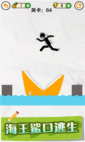 1、在这里利用你强大的绘画方式和突出的策略,同时发挥你的想象来帮助火柴人解决困境。