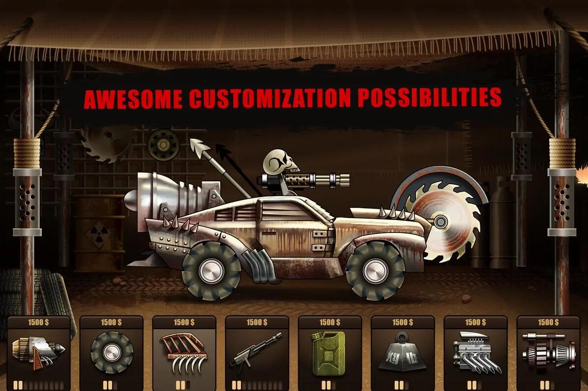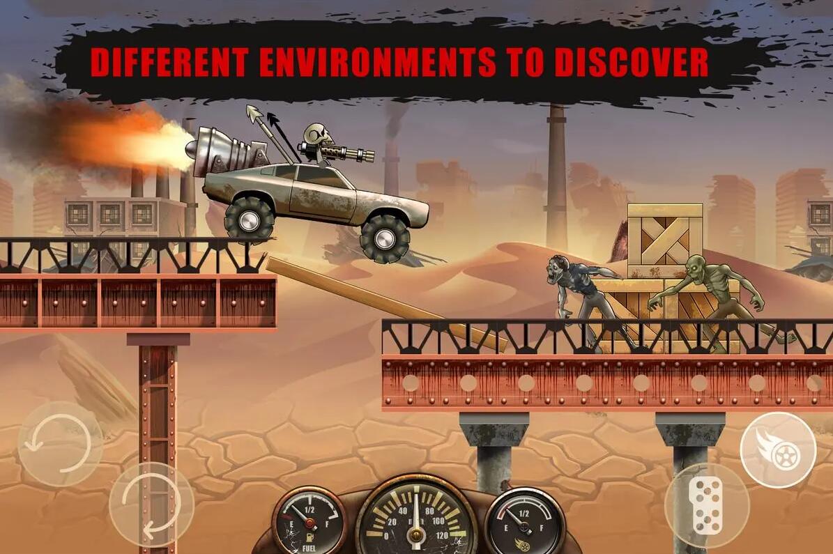 下载山地僵尸赛车中文版融合了僵尸和赛车等经典元素,可以通过收集金币来完成各种道具的购买,这个玩法已经有了一个全新升级,更多选择可以体验,通过各种不同的零件来强化自己的车辆。