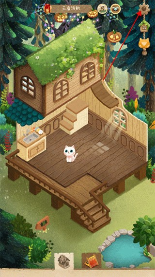 1、打开猫咪密林后,点击游戏界面上方的猫咪图标,弹出下拉菜单。
