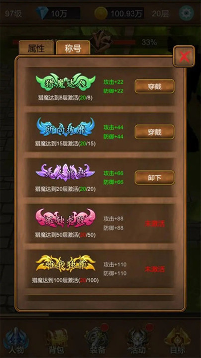 下载单机猎魔传是轻松休闲的挂机小游戏,玩家将在游戏中化身为勇敢的猎魔者,不断击败怪物、提升自身实力。单机猎魔传手游中文版下载操作简单,无需繁琐操作,每天只需花费少量时间即可轻松升级,离线也同样有收益,真正做到“不肝不累,轻松变强”。单机猎魔传下载手机版安装中还设有多种趣味副本,挑战强力BOSS还能获取更高级的装备奖励。无论是在等车、休息,还是闲暇时光,单机猎魔传都是打发时间的理想选择。