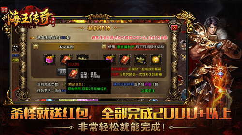 1、新手玩家建议跟着主线做完打怪任务就可以开始杀怪获得悬赏任务,这里的所有装备都靠打怪爆出。