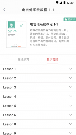 5、电子商城:提供吉他、贝司等乐器及配件购买,并通过扫码解锁教材中的音频示范和伴奏。