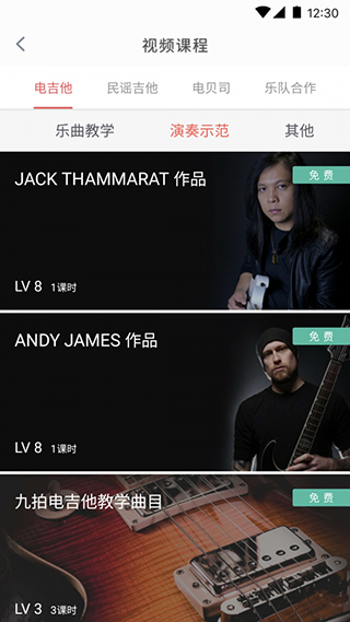 5、学习吉他技巧和高阶曲目,通过技术讲解视频提升演奏水平。
