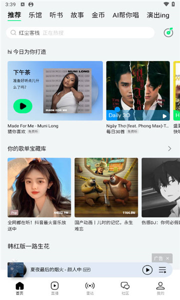 2、会智能的推荐用户喜欢类型的一些歌曲,让你获得丰富的听歌氛围。