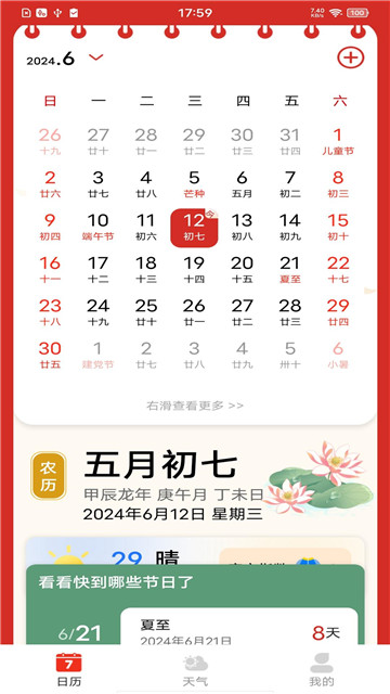 3、还有农历的内容可以进行查看,让你准确的了解节气的信息。