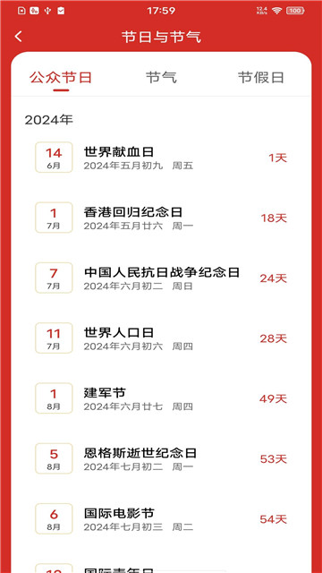 4、直观的显示节假日的内容,还可以为你进行快速提醒。