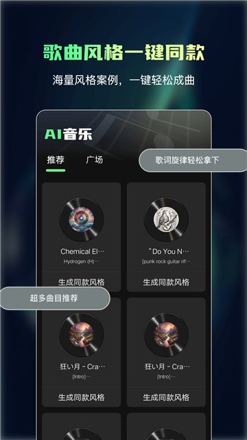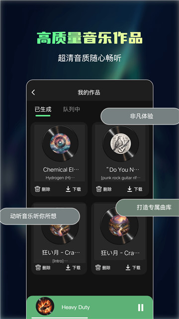 下载ai一键成曲是一个可以帮助你快速生成需要的歌曲的智能软件,你可以根据自己的需要输入文字,这个软件可以帮助你把灵感变成现实,整体的功能非常的方便快捷,让你可以快速开启属于自己的创作路程。