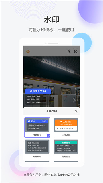 3、可以帮助你对水印的内容进行自动的更新,让你更好的实现打卡操作。