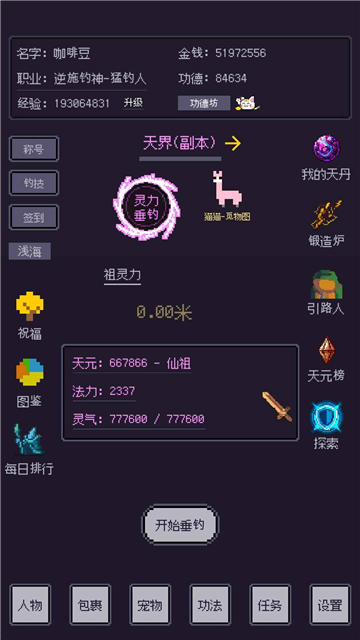 游戏可以用文字进行游戏过程,用文字进行钓鱼、回合战等。