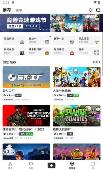 下载小黑盒平台是一款专为steam游戏玩家定制的游戏盒子平台,一般又称为steam小黑盒,平台包含了steam发行和快要发行的游戏,在这里你不仅能了解到各类游戏,同时也能了解到游戏市场行业的一些资讯信息,并且还能在这个平台上购买一些游戏的cdk,是非常专业游戏平台。