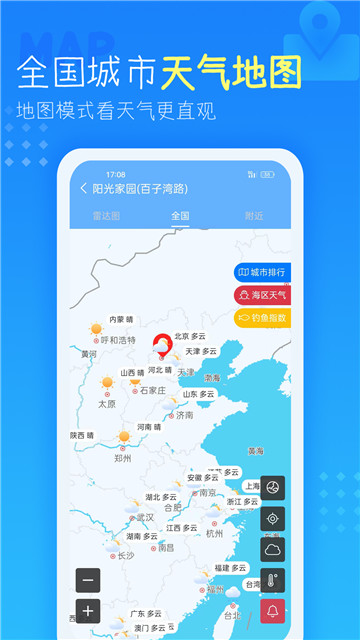 2、支持自动进行定位的功能,帮助你准确了解天气信息。