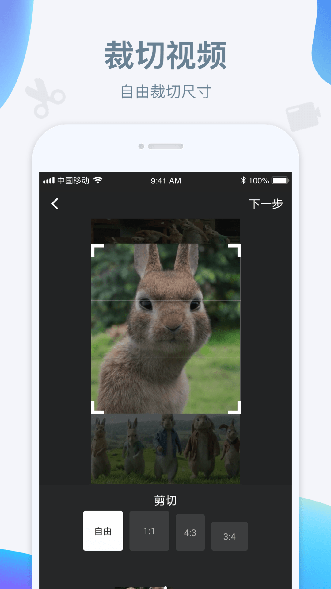 1、支持自由裁剪视频的尺寸,还有不同的尺寸可以选择。
