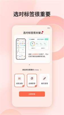 2.根据用户选择的标签,不同的食物拥有不同的饮食建议,同时为你提供血糖相关的数据信息