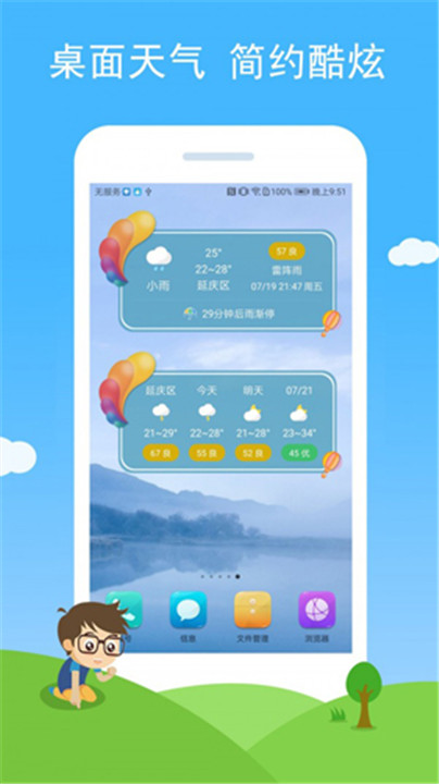 七彩天气app下载像是贴心生活助手。它支持多种桌面插件与个性化动态背景,自由设置展示方式,贴合你的操作习惯与审美偏好。遇到限号提醒、突发污染、强对流天气,七彩天气手机版下载都能第一时间智能推送预警,让你掌握主动权,未雨绸缪。无广告打扰、界面清爽,信息层次分明,适合老人、上班族、学生等不同人群使用。更贴近生活、更具科技感,七彩天气安卓版下载不仅关注数据的精准,更重视用户的使用体验,让每一位用户都能在变化无常的气候中找到一份笃定与从容。