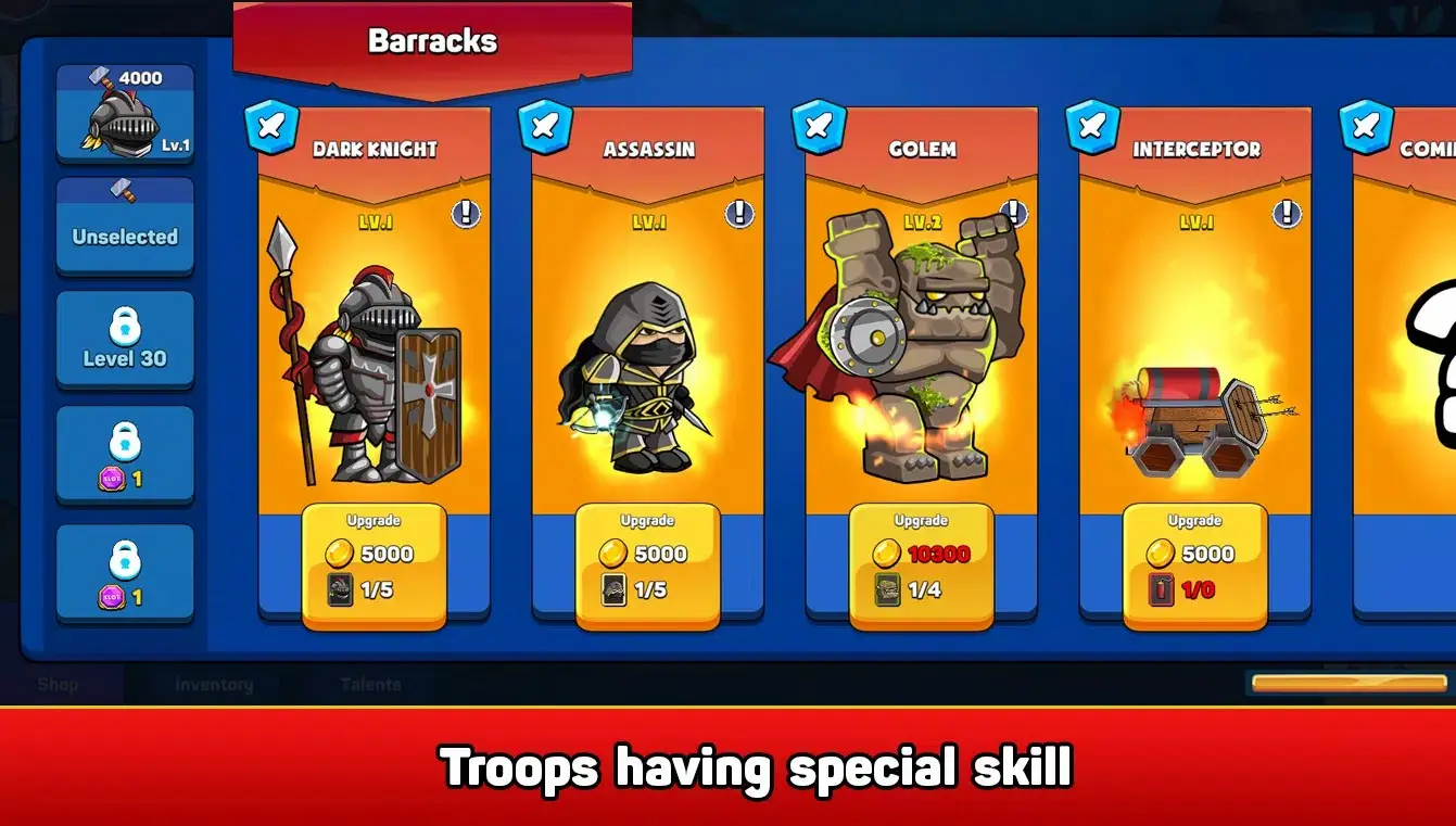 3. 玩家可以通过消耗资源来升级防御设施和英雄角色。升级后的防御设施和英雄角色将拥有更强的攻击力和防御力,能够更好地抵御怪物的入侵。