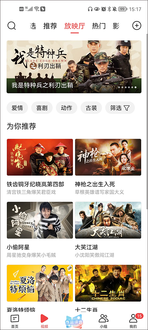 1、用户需要进入到视频列表中,进入到放映厅页面。