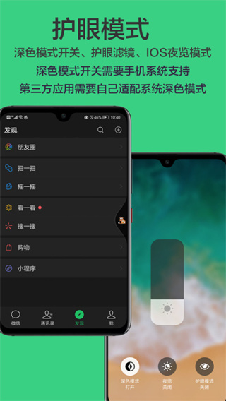 3、应用页面颜色跟随系统,系统支持深色模式的,开启后,应用也是深色模式。