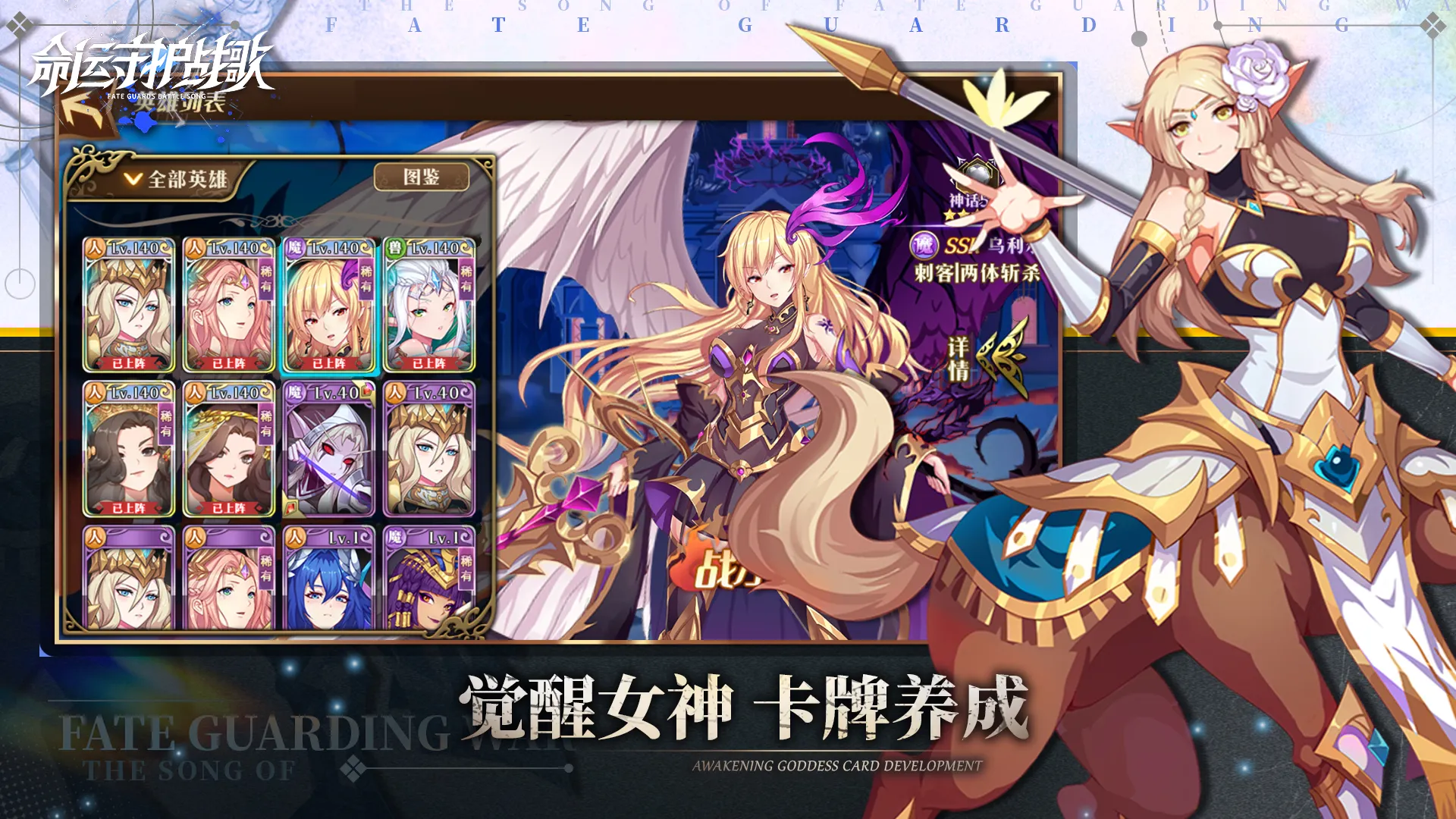 2、策略性卡牌玩法和丰富的PvP竞技,与众多女神角色并肩作战,共同守护卡利亚大陆的和平。