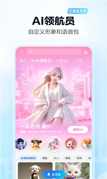 - AI领航员,智能情景贴心陪伴,还能自定义形象和语音包