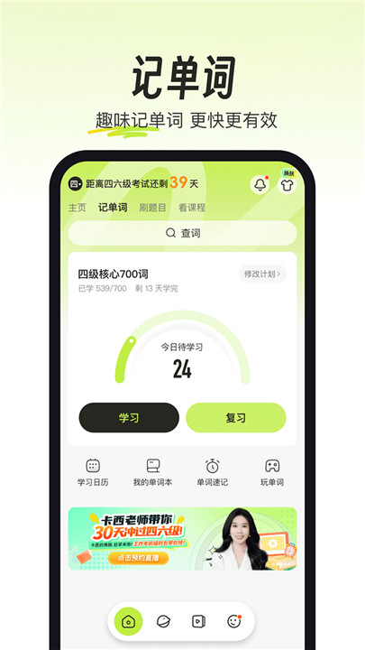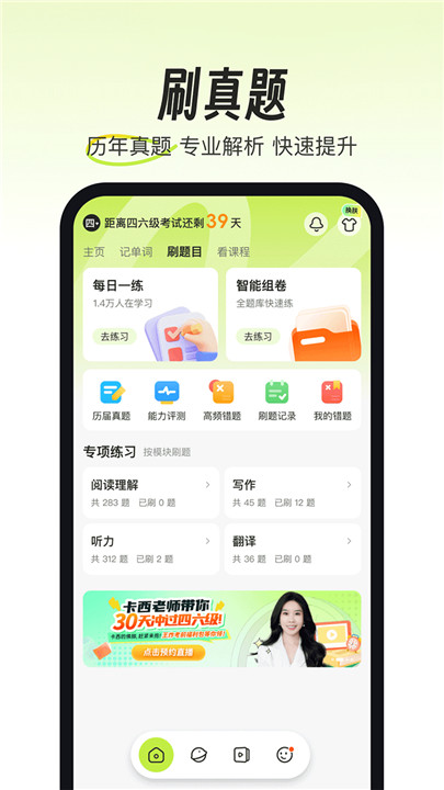 考试蚁背单词app下载专为大学生群体精心设计,涵盖英语四六级、考研英语、专升本、计算机等级考试等热门科目,它将科学记忆与趣味互动相结合,摆脱传统死记硬背的低效模式。考试蚁背单词安卓版下载通过智能算法识别你的易错词与薄弱知识点,动态调整学习节奏,实现真正意义上的千人千面学习方案。更有丰富真题练习与名师精讲课程辅助,助你从基础打牢到冲刺提分,步步为营稳步进阶。考试蚁背单词手机版下载还集成了错题本、学习打卡、数据跟踪等实用功能,让备考过程更可视、更有成就感。