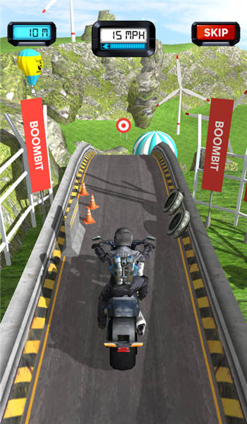 1、游戏中轻松简单的玩法,控制摩托车灵活移动。