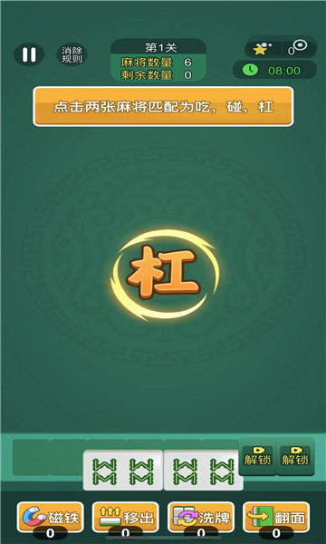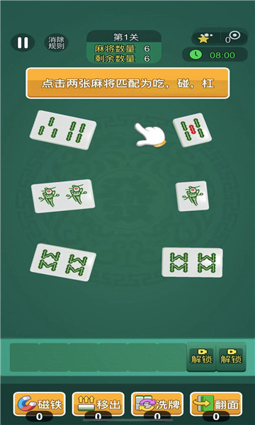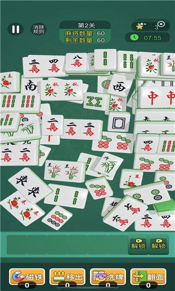 1、游戏采用经典的休闲消除的玩法,融合了麻将的经典元素。