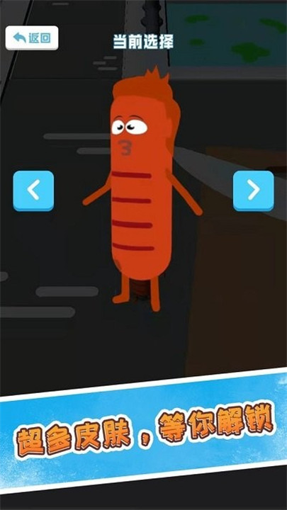 卡通画风,香肠人形象趣味十足:可爱搞怪的香肠角色和丰富皮肤选择,带来强烈的视觉吸引力与幽默感。