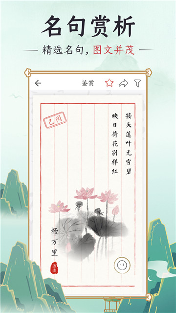 2、各种非常经典的诗词名句都可以在这里找到,让你更加方便的进行学习。