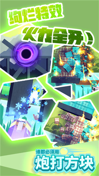 简单操作,解压爽快:只需一指点击,指哪打哪,释放炮弹摧毁方块,轻松上手超解压。
