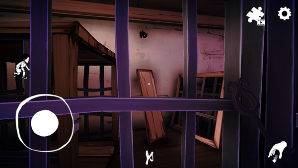 6、接着,控制轮盘移动,走出铁笼,并开始通过寻找线索来逃离这个充满恐怖氛围的房间吧!
