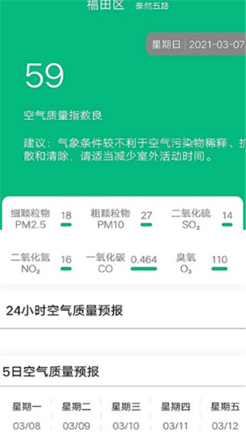 4、各种相关的生活指数实时进行内容的更新,帮助你更好的了解到空气的污染情况。