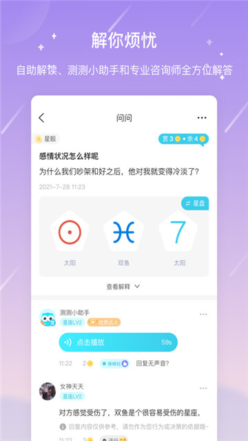 4、可以和其他的用户实现一对一的咨询功能,通过不同的方式更好的分析心理信息。