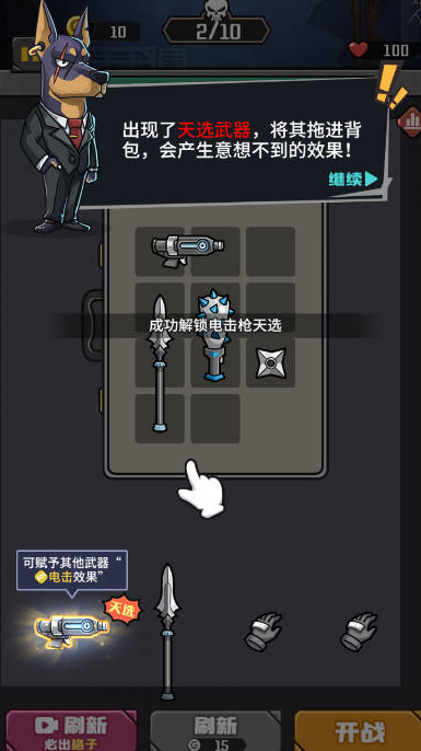 3、在方格中相同的武器可以合成更加高级的武器,将高级武器放入背包。