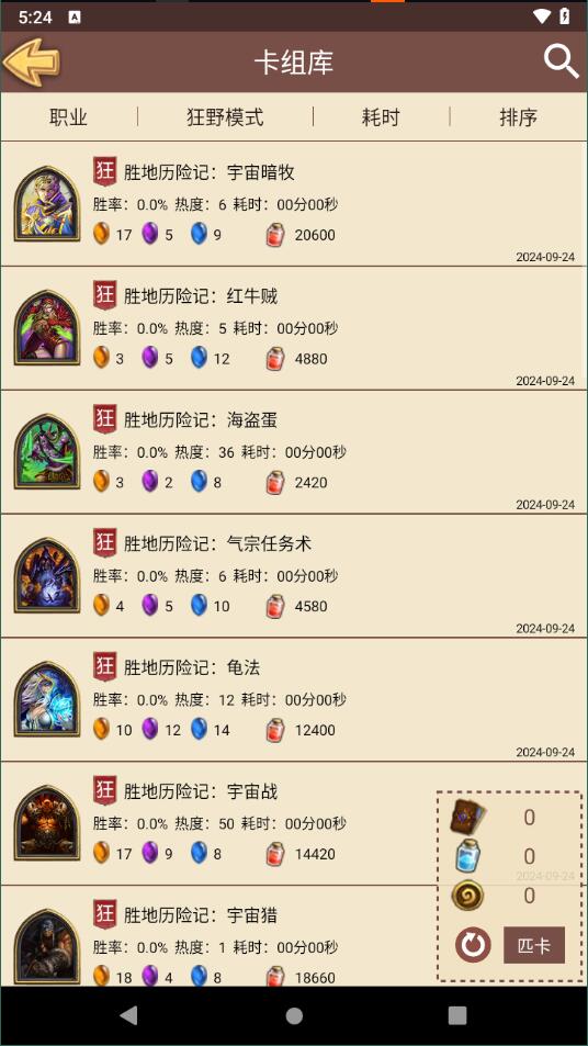 卡组库:包含不同类型的卡组信息,可以通过职业、模式、耗时等信息来进行检索。