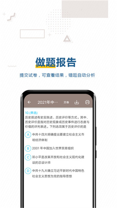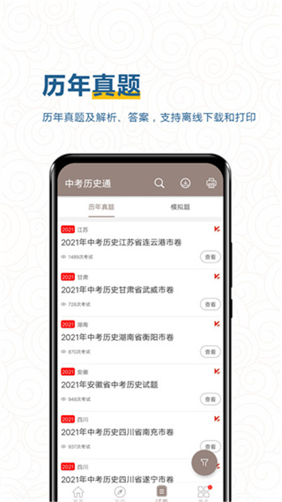 下载想在中考历史中拔得头筹,不一定要死记硬背,而是要找对工具。中考历史通app下载正是为初中生量身打造的智能学习利器,专注于中国史与世界史全阶段知识梳理,紧贴多个教材版本,适配广泛,轻松应对各类考试要求。无论你在历史学习中遇到哪个盲区,中考历史通安卓版下载都能用章节精讲、历年真题解析、错题记录等方式助你逐个击破。中考历史通手机版下载的同步练习板块则能及时查漏补缺,让你的学习效率再翻倍。而每日的中考倒计时提醒,能帮助你合理规划备考节奏,避免临时抱佛脚。