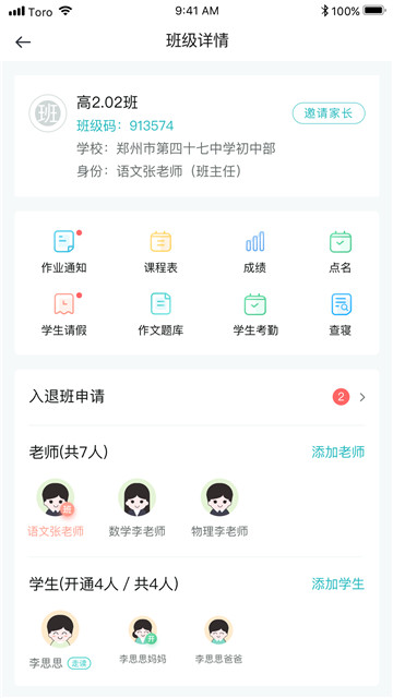 2、根据不同身份的需要进行了不同的功能设定,在这里了解到学生的学习信息,实现共同教育。
