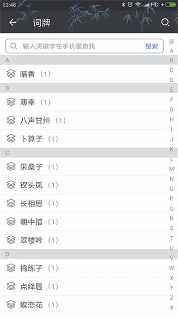 1、海量的诗词内容可以进行查看,支持通过关键词的形式进行搜索。