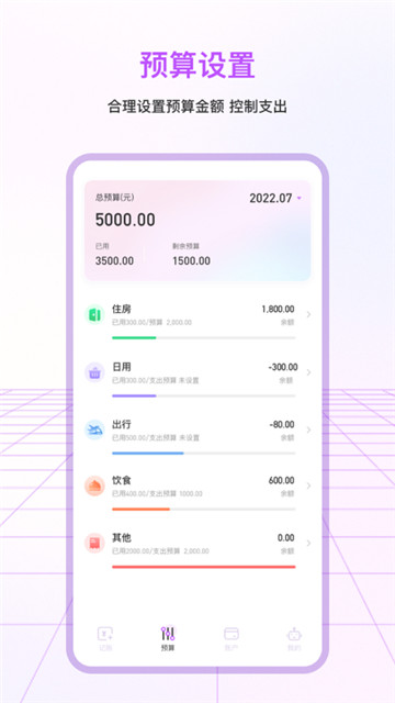3、可以在其中进行预算的设置功能,对于超出的额度会进行预警处理。