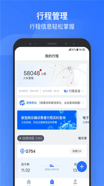1、全方位的行程管理,可自行添加,自动同步12306账号行程。