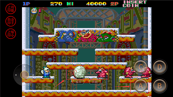 1、在雪人兄弟双人版手游中你可以用冰块攻击对手,也可以得到—些生命、药物和积分。