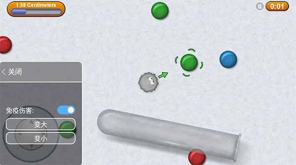 5、玩家需要注意的一点是,在游戏过程中,如果你被比你大的物体碰到的话,是会减小你的体积的。所以玩家在寻觅美食时,一定要注意避开这些庞然大物,以免让自己遭殃。