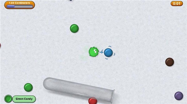 1、游戏画面很萌,小球球很萌,而且根据最近吃下去的东西的颜色还会改变身体的颜色。