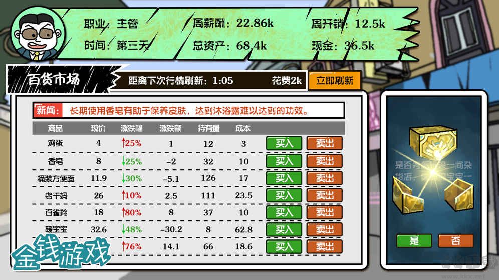 2、从基础的百货市场到高级的金融产品,玩家可以构建自己的多元化投资组合,追求最大化的收益。