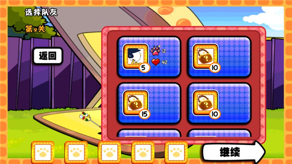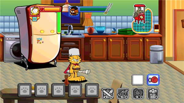 4、当加菲猫被击倒并且没有血时,你可以选择花费3个方块来复活,或者重新开始这个关卡等级。