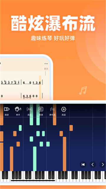 2、内置AI钢琴简谱,自带节奏器,可进行分手练习,速度调节,曲调变化等多项智能功能。