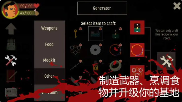 2、随机生成地图、获取经验、制作武器并寻找有用的物品。