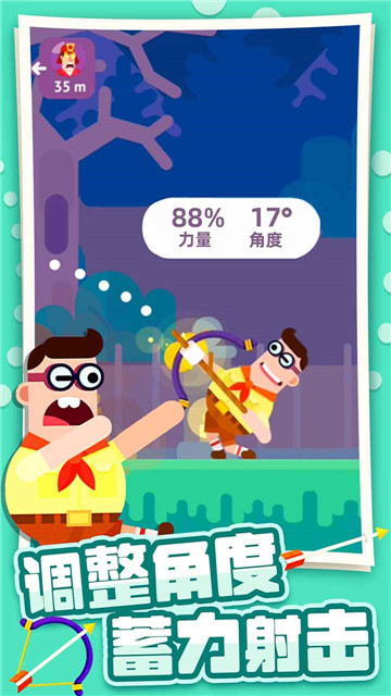 在这个游戏里,玩家可以根据自己的距离、障碍物的位置来调整自己的射击角度和力量。
