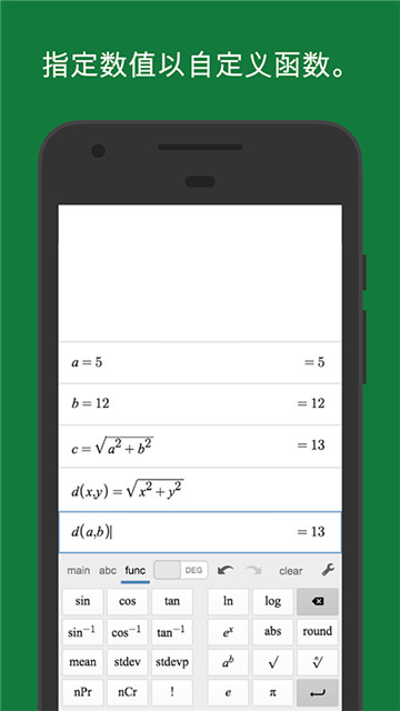 我们有完整的Qwerty键盘具有标点符号和pi字符。您还可以使用我们的功能键盘访问更高级的三角函数和统计函数。