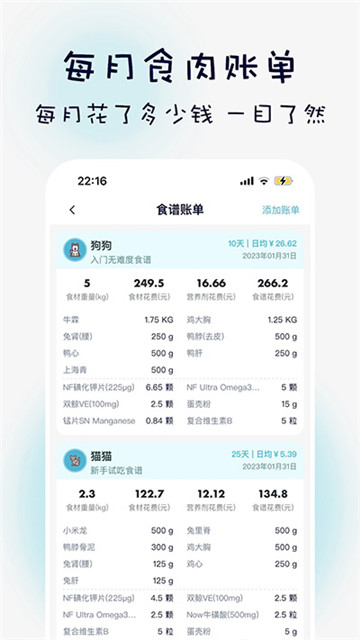 1、通过宠物的需要进行其中营养的快速记录,让用户可以更好的安排食谱内容。