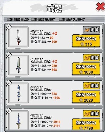 2、当赚钱一定的金币后,记得直接强化自己的武器,